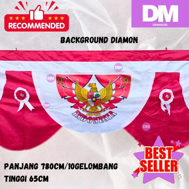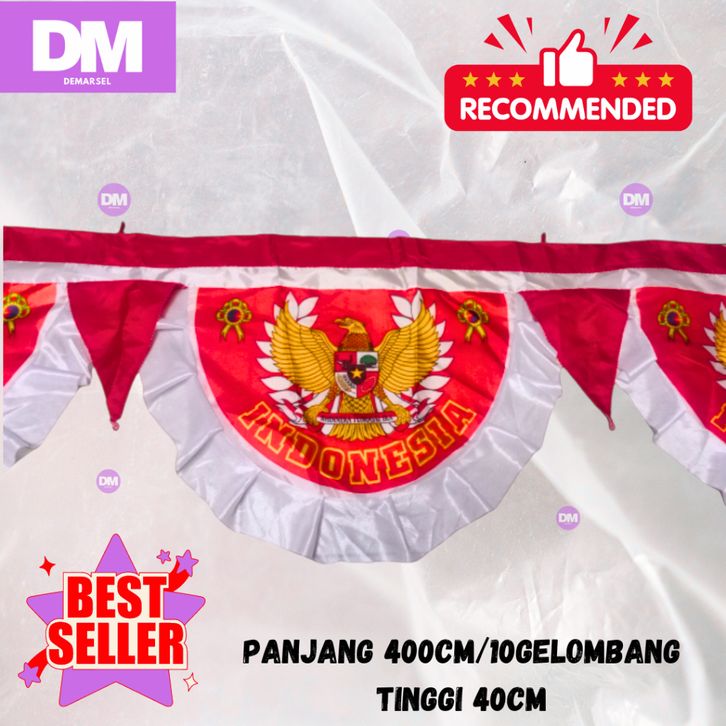 BENDERA BACKGROUND GARUDA CANTIK BENDERA MERAH PUTIH 10 GELOMBANG (6M)
