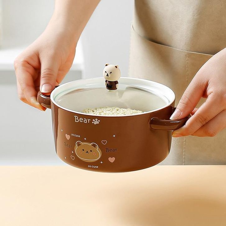 Mangkok Makan Mangkok Keramik Tutup Kaca Motif Flamingo dan Kaktus
