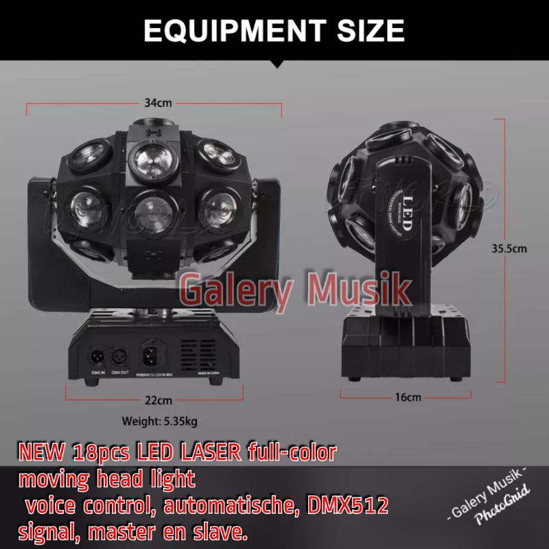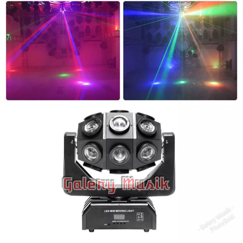 NEW 18PCS LED X 12WATT + LASER FULL-COLOR MOVING HEAD LIGHT BUAT TEMPAT DISCO, DJ, NIGHT CLUB, PANGGUNG, PERTUNJUKAN LANGSUNG, PESTA, EVENT, DANCING HALL, KONSER, BAR, DLL.,✓ PRODUK ORIGINAL