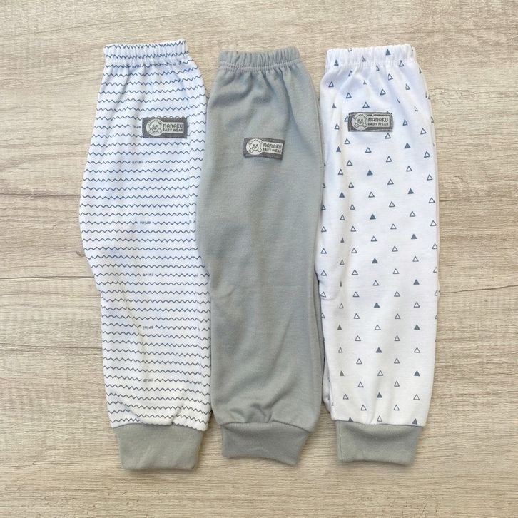 Nanaku Baby - Isi 3 PCS Setelan Baju Bayi Celana Panjang Bayi Baru Lahir Usia 0-3 Bulan Series Abu Premium