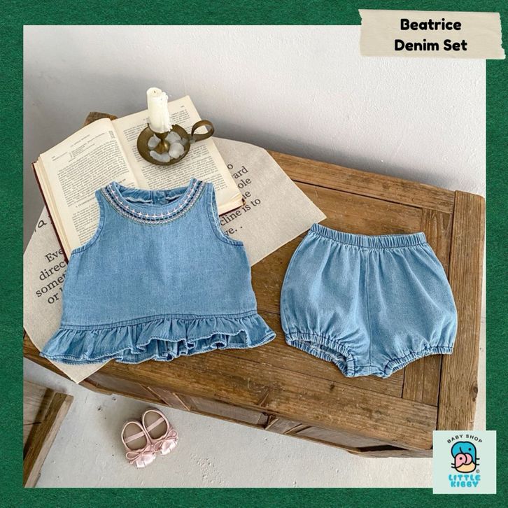 LITTLE KIBBY - BEATRICE DENIM SET | JUMPER JEANS BAYI | JUMPER OVERALL DENIM BAYI | JUMPSUIT JEANS BAYI | JUMPER JEANS