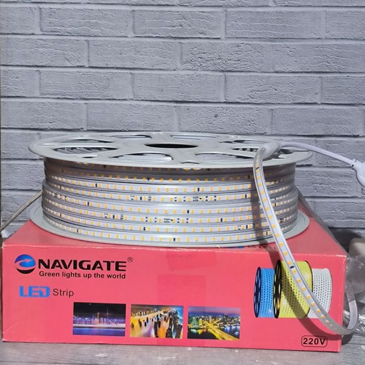 HARGA 1 ROLL 100M NAVIGATE LED STRIP LIGHT 2835 120LED/METER IP66 220V PUTIH / WARM WHITE / BIRU / MERAH / HIJAU