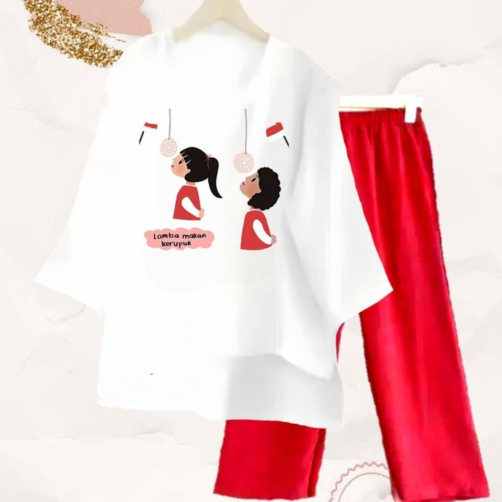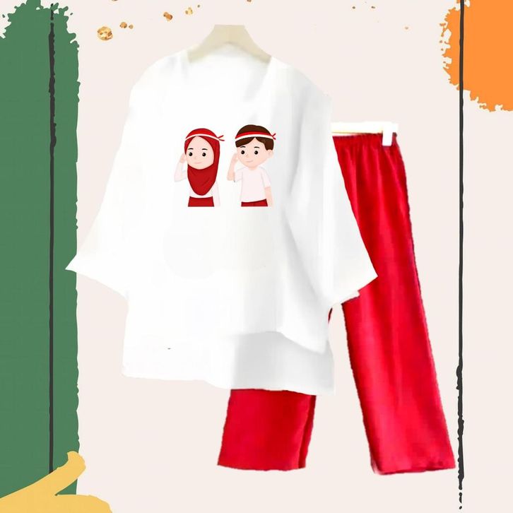 Setelan Baju Anak 17 Agustus STELAN ANAK PEREMPUAN SPESIAL HUT RI 79 TAHUN BAJU AGUSTUSAN Lengan panjang Celana Pakaian