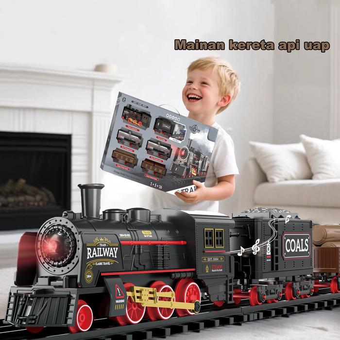 Mainan Kereta ELEKTRIK Klasik edukasi Train Set Laki Laki kereta api rel lokomotif gerbong Anak kado