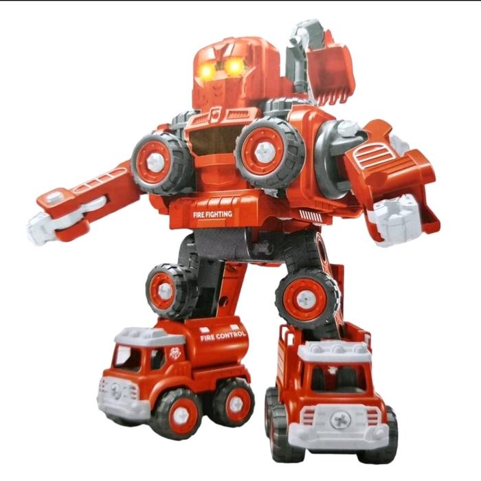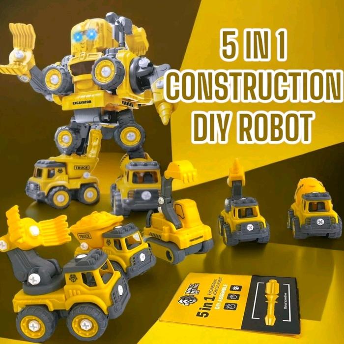 mainan anak 5 in 1 robot konstruksi lampu nyala ada suara