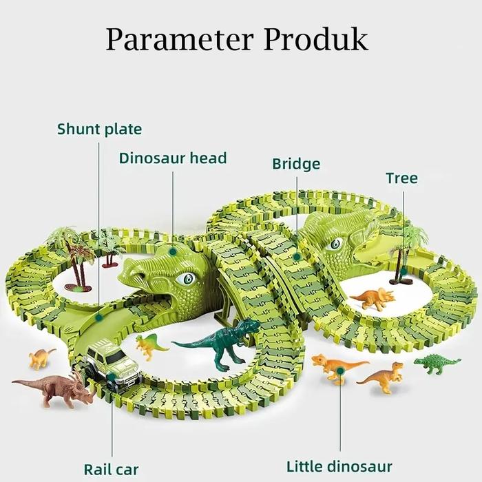 Mainan Dinosaurus Rel Mobil 260PCS Track DIY Kereta Mobil Mainan dengan Trek Edukatif Seru Anak