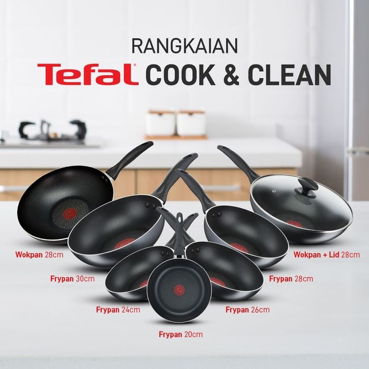Tefal Wajan Anti Lengket Set 2 Pcs / Penggorengan / Pan - Cook & Clean Frypan Series - Garansi 1 Tahun - 2 Wajan