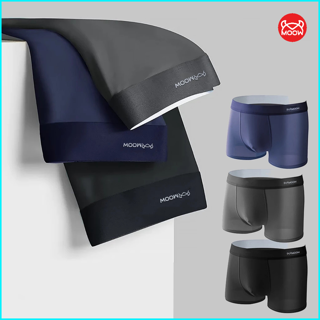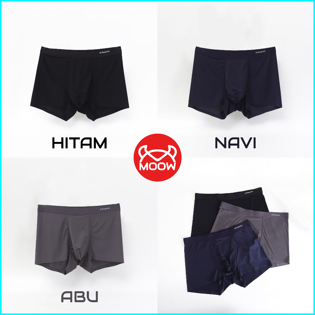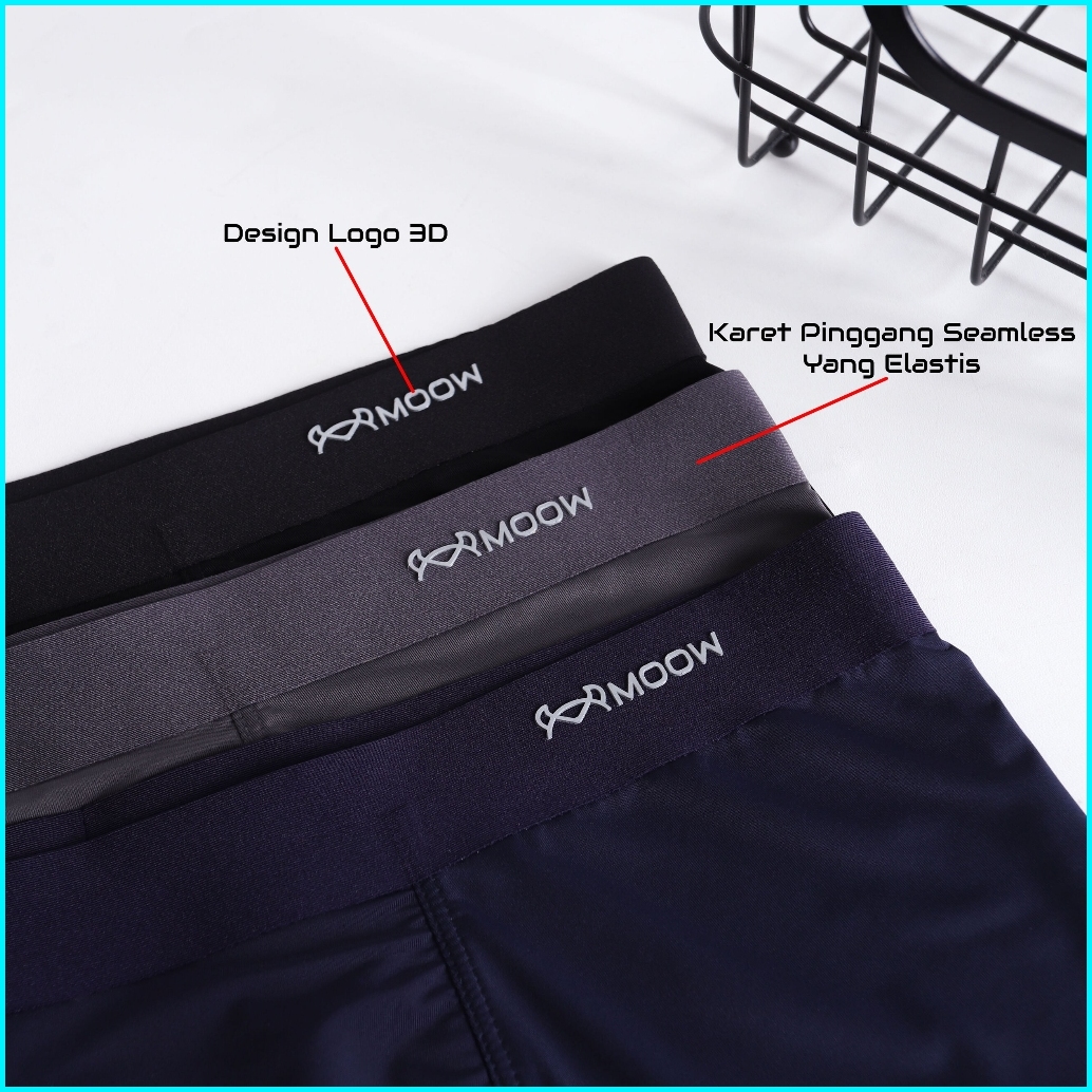 Moow Paket 3 Pcs Celana Dalam Pria Boxer Icesilk Seamless Premium Adem Lembut Antibakteri 5a Mp52