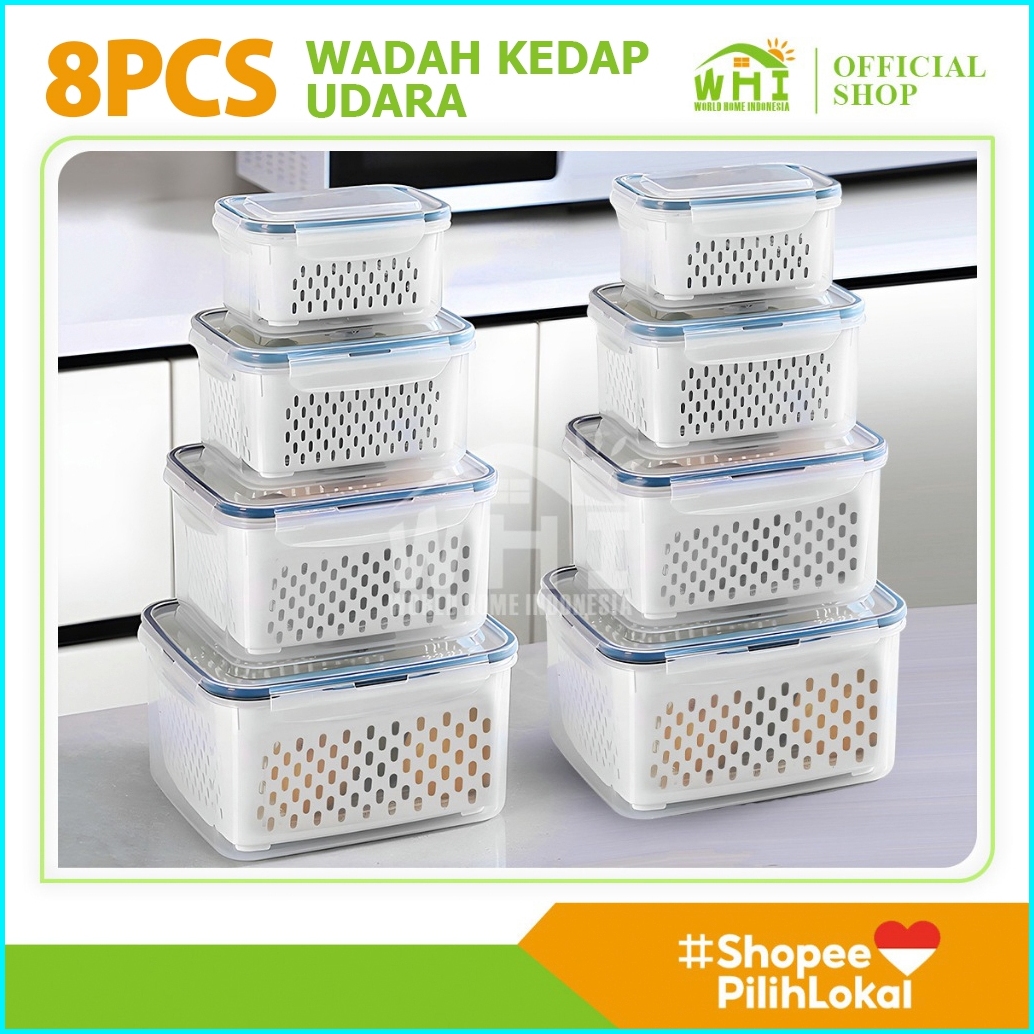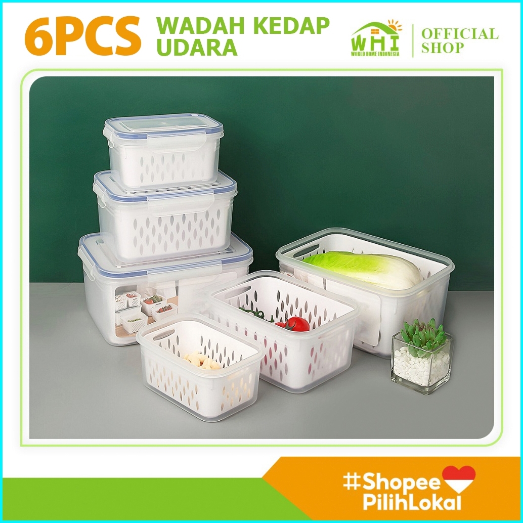 World Home Kotak Plastik Kedap Udara 6pcs 8pcs Kotak Makanan Buah Sayur Kulkas Kotak Beranak