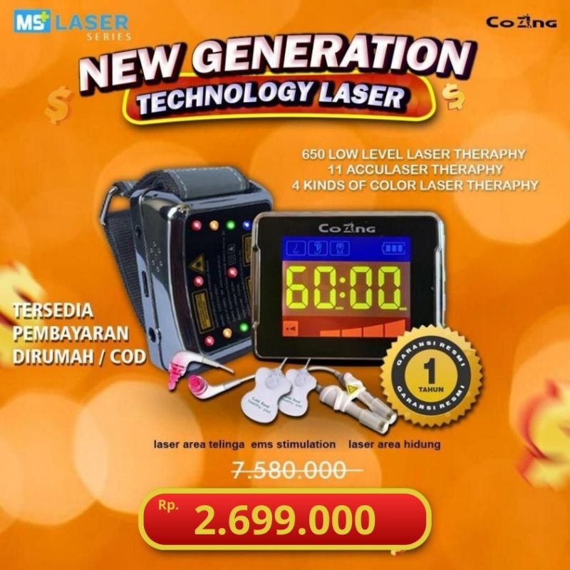 JAM DR TERAPI LASER COZING DAN MS LASER PLUS INTRANASAL KIT DAN TINNITUS KIT NEW GENERATION 10+1 TITIK AKUPUNTUR 4 WARNA MS LASER TERSEDIA PEMBAYARAN DI RUMAH