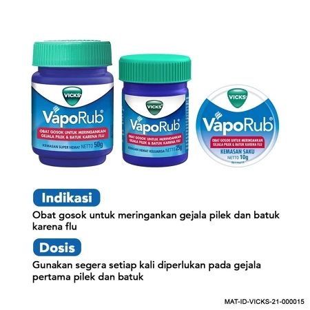 Vicks Vaporub Balsem Meringankan Gejala Batuk dan Pilek ukuran 50gr, 25gr, dan 0,5ml Termurah Best Seller