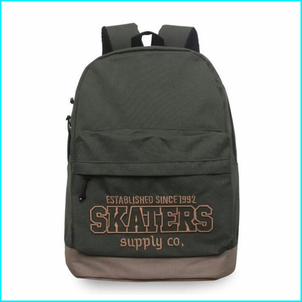 Skaters - Bag Backpack Back To School Tas Ransel Pria Dan Wanita Unisex Hijau Olive Crem Tg002