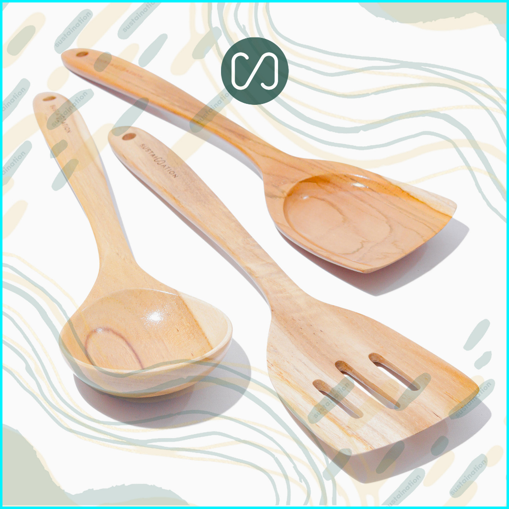 Sustaination Alat Masak Kayu Jati Spatula Sutil Sodet Sendok Sup - Set Alat Masak Kayu Premium