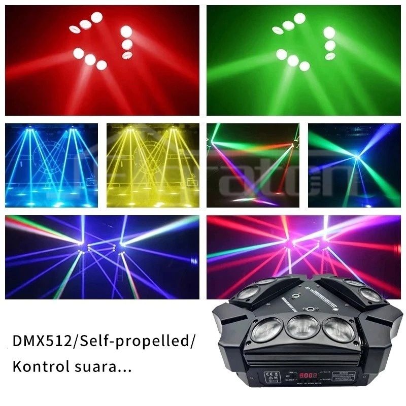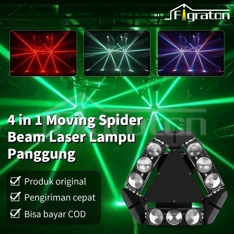 LASER STROBE LAMPU MOVING HEAD SPIDER BEAM SPIDER LIGHTS LAMPU PANGGUNG FULLCOLOR RGBW 9X3W 4IN1 TRIANGLE LED BEAM DISCO LIGHT MOVING HEAD LIGHT BAR DISCO CLUB PARTY EVENT DANCING KONSER WEDDING KFI
