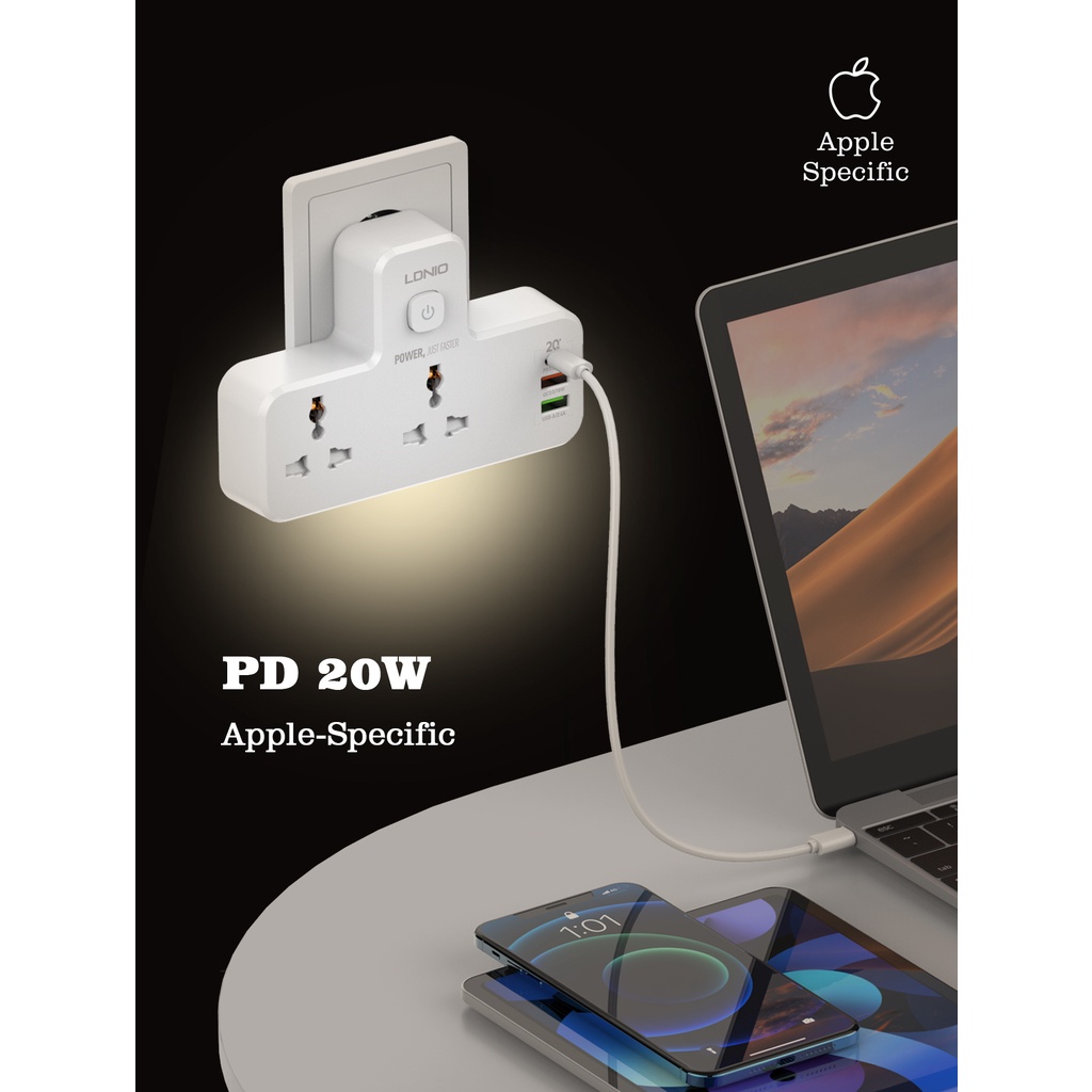LDNIO Stop Kontak Power Socket SC1418 SC2413 SC2311 SE2337 SE2435 Colokan Listrik Fast Charging 2 Socket 3 4 USB Port Night Lamp