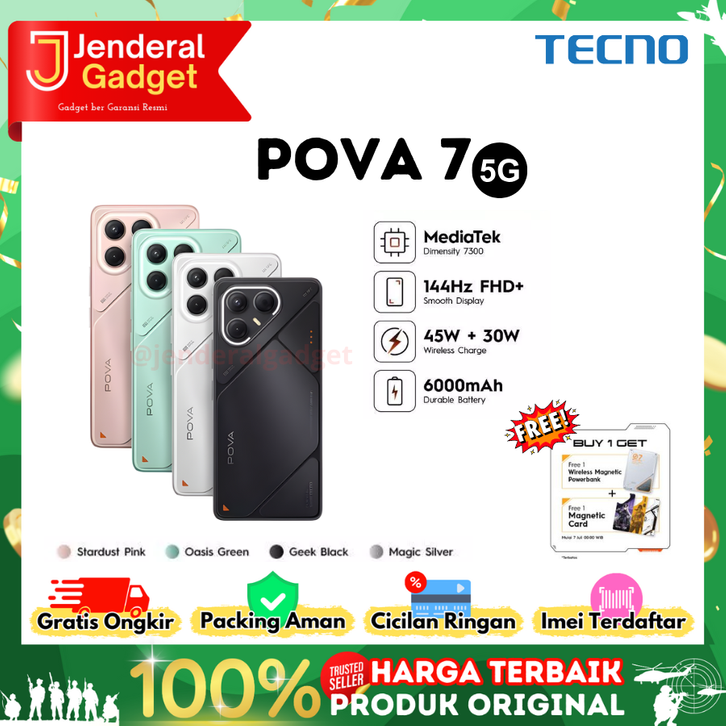 Tecno Pova 7 5G 8/128GB NFC [ Free Wireless Powerbank ] Garansi Resmi Indonesia