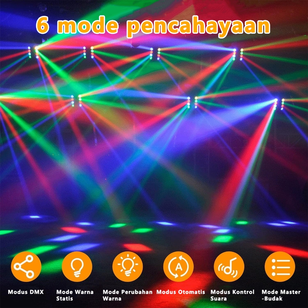 LAMPU KEPALA BERGERAK SPIDER/ SPIDER MOVING HEAD LIGHTS 8X10W LED BEAM DJ LIGHTS RGBW SOUND ACTIVATED DAN KONTROL DMX-512 DISCO LIGHT BELT STROBE LIGHT