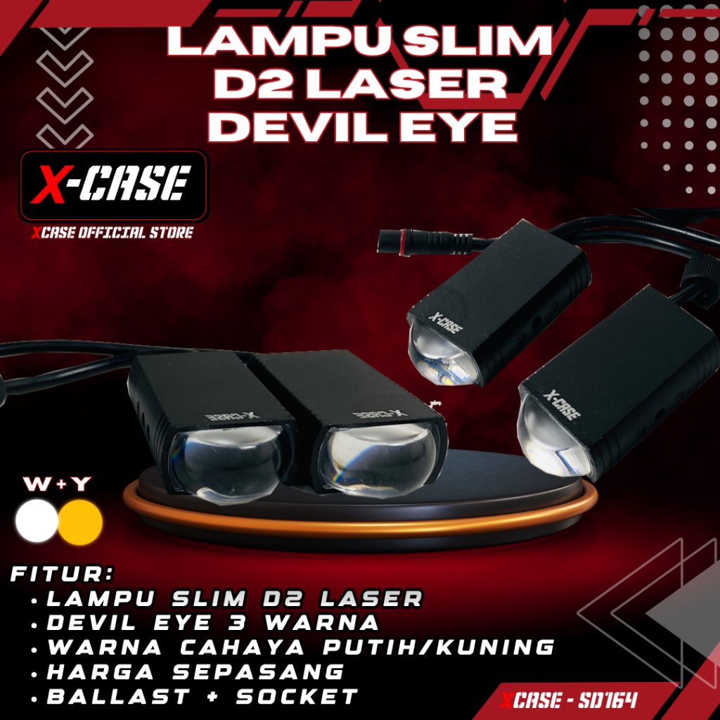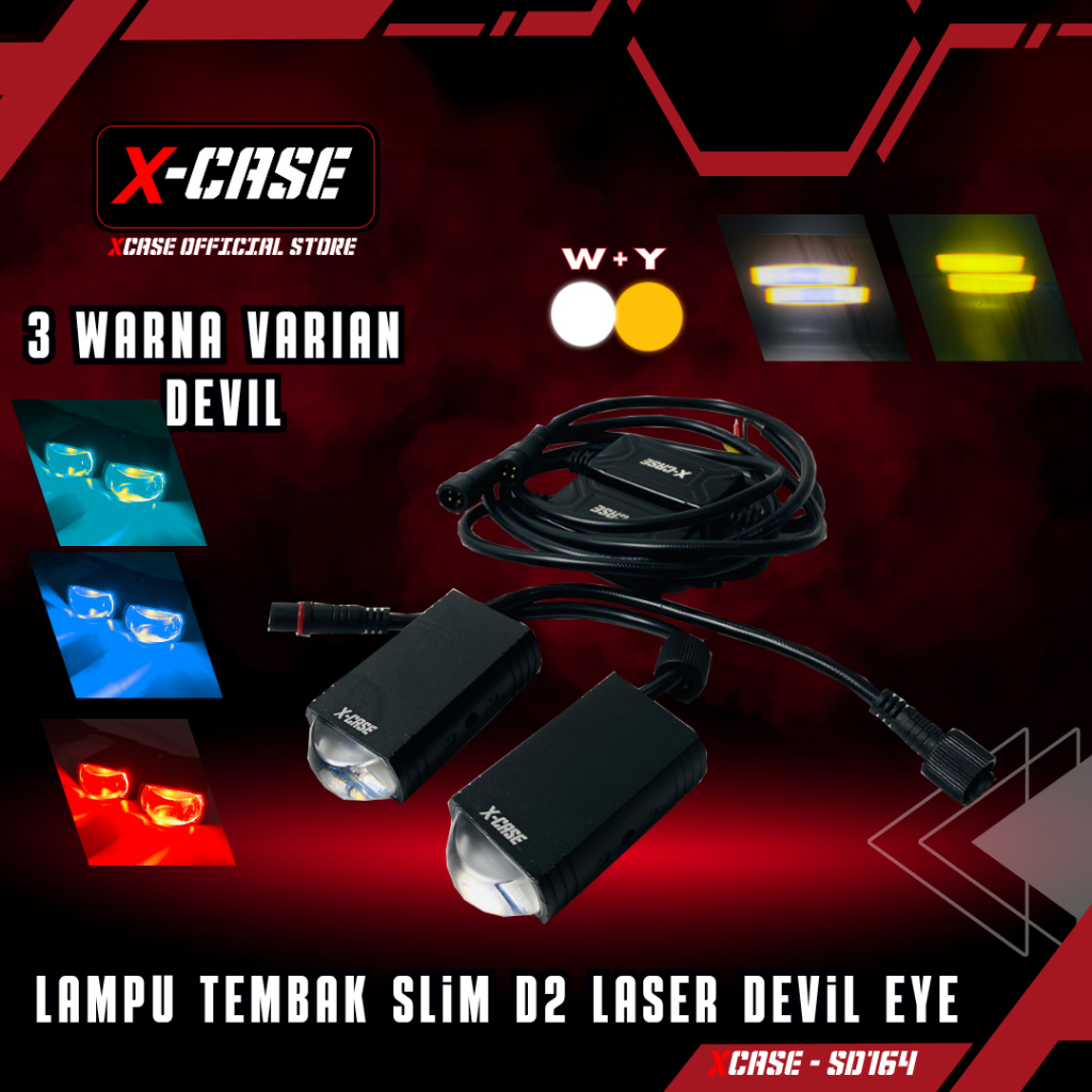X-CASE LAMPU TEMBAK D2 LASER SLIM DEVIL EYE WHITE YELLOW SEPASANG UNIVERSAL MOTOR MOBIL SD 164