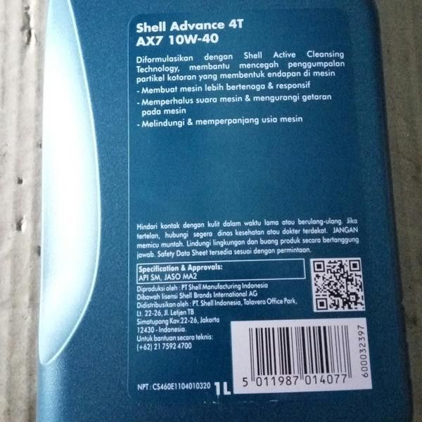 PROMO Oli / Olie Shell Advance AX7 1 Liter Manual 10W/40 SM, JASO MA2 ORIGINAL