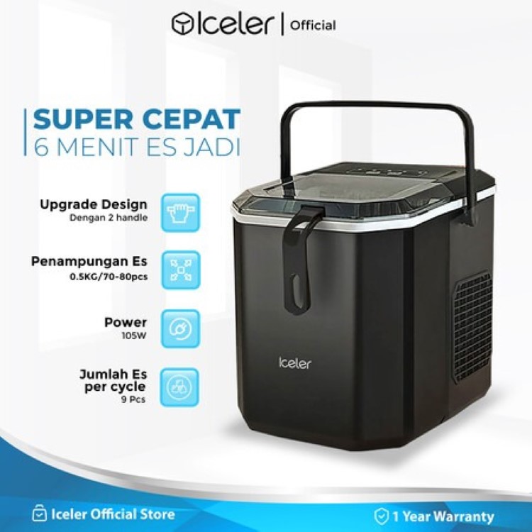 Mesin Pembuat Es Batu Kristal Portable Iceler 12Kg Otomatis Cepat 2 Handle Ice Maker Elektrik Rumah Tangga