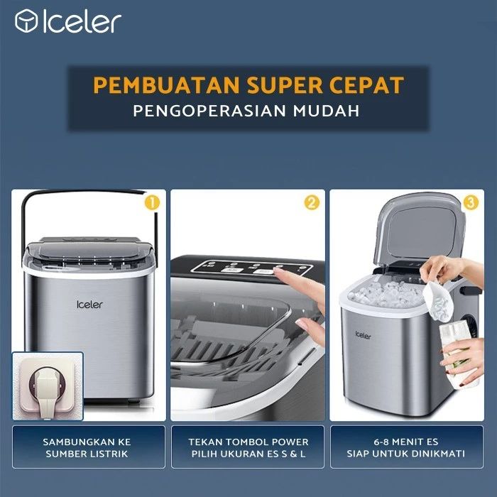 Mesin Es Batu Kristal Portable TERBARU - Iceler ice masker 12 kg perhari dengan 2 Handle