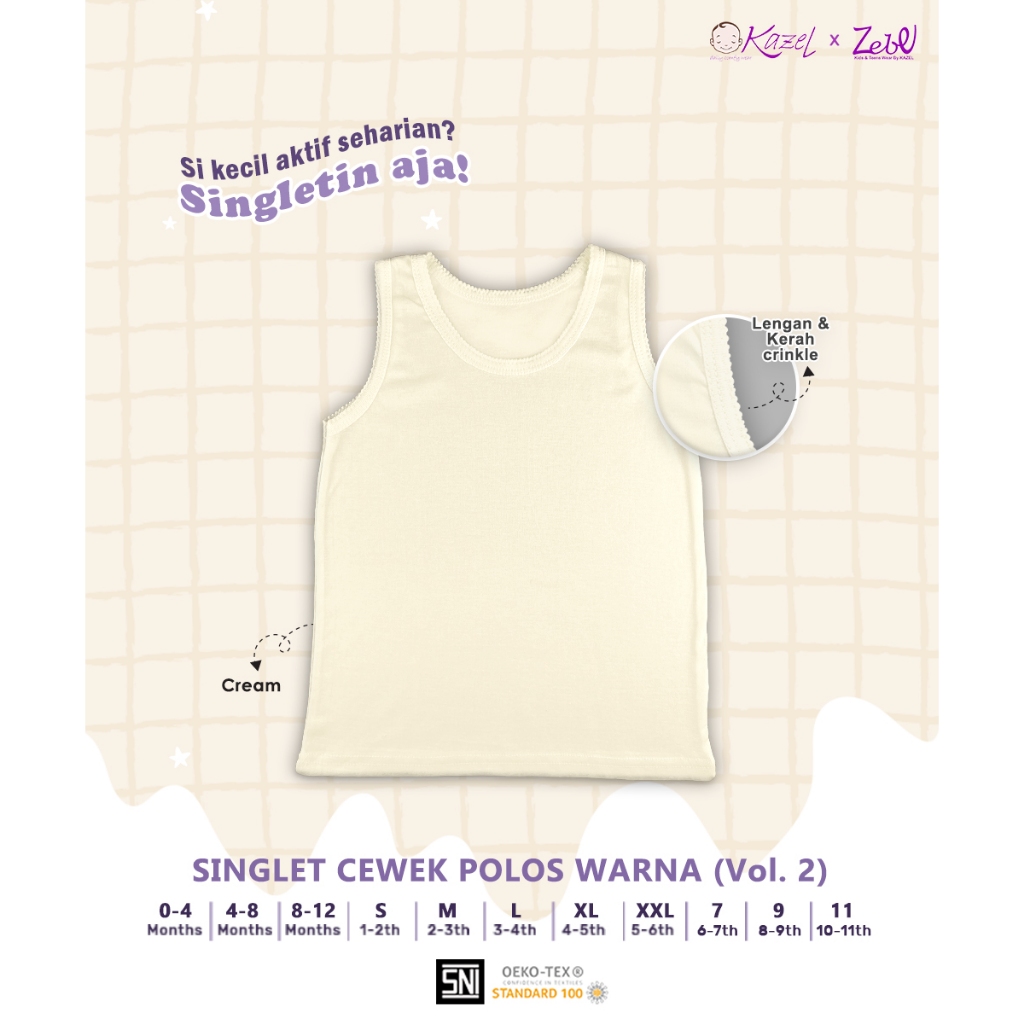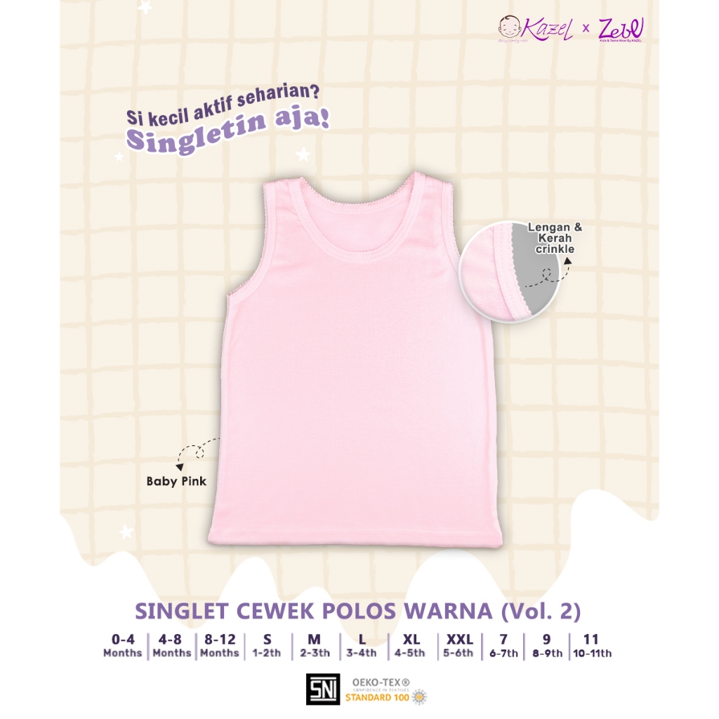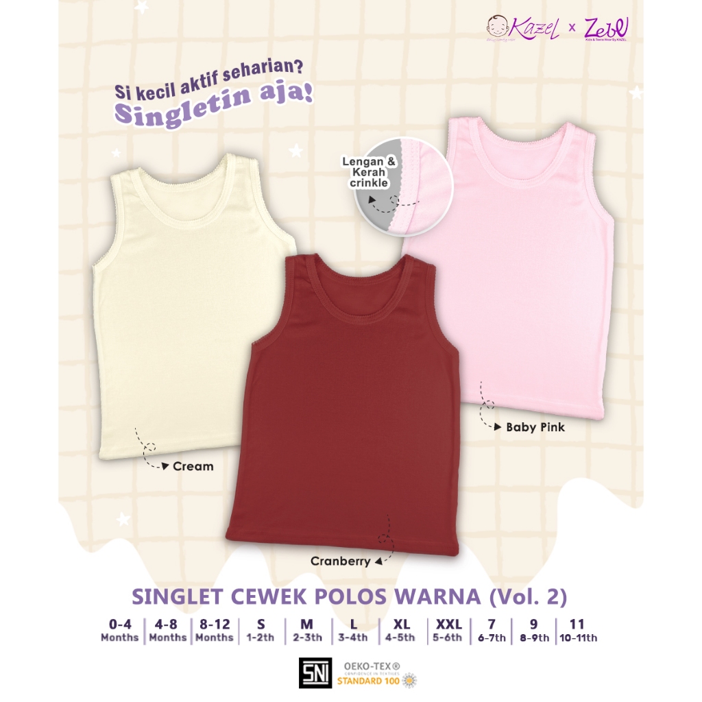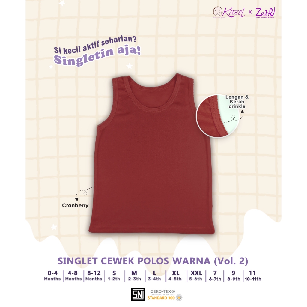 KAZEL Zebe Singlet Cewek Polos Warna Vol. 1 & 2 (6 Pcs/12Pcs) 0-11 Tahun