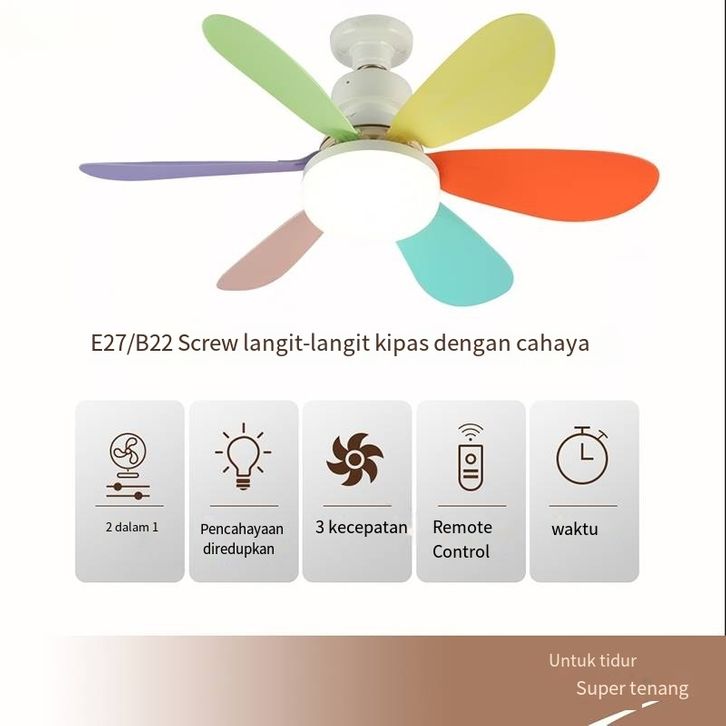 Lampu kipas langit-langit LED E27 dengan peredupan remote control, cocok untuk ruang tamu, ruang belajar, dan digunakan