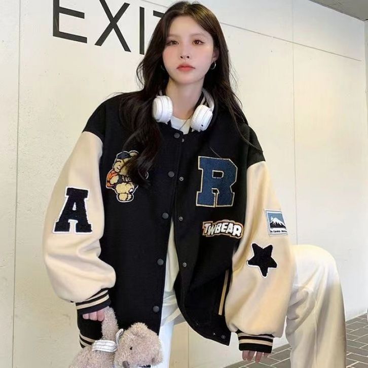 JAKET BASEBALL FLEECE BIG SIZE TW BEAR (SABLON) JAKET VARSITY KANCING BOMBER ULZZANG UNISEX (S - 6XL )