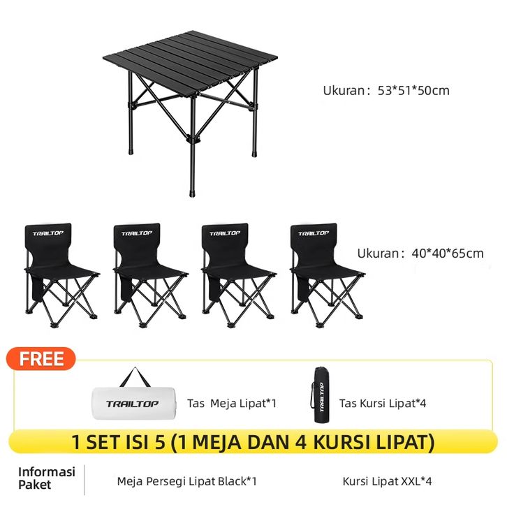 Meja Camping dan Kursi Lipat Outdoor 1 Set – TrailTop Serbaguna