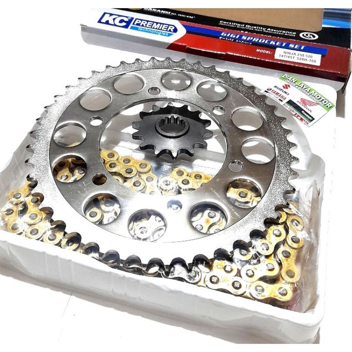 KCP Girset Kc Premier Kawasaki Ninja Mono Ninja 4T 250 14T/45T 520H-108 Rante 6old Type Sss bajja Asli Kuat Girpaket G