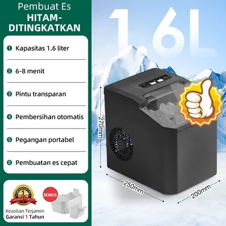 Pembuat Es batu kristal TERBARU Otomatis LENODI 110w Kapasitas Penyimpanan Besar Pembersihan otomatis Cocok untuk musim