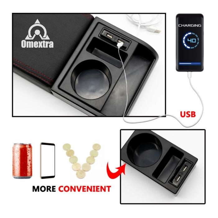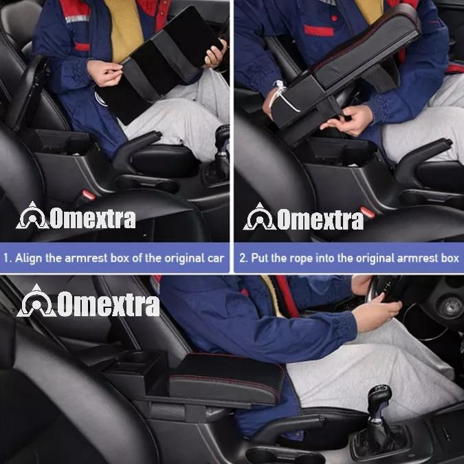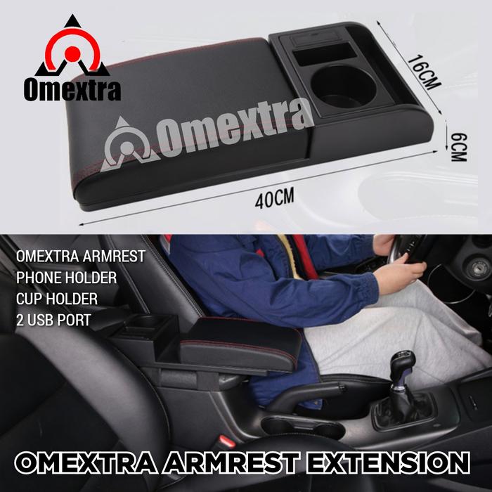 [Star]Omextra Armrest Box Universal Extension Armrest Raize Rocky Agya Veloz - SEDANG (36cm), jahit hitam