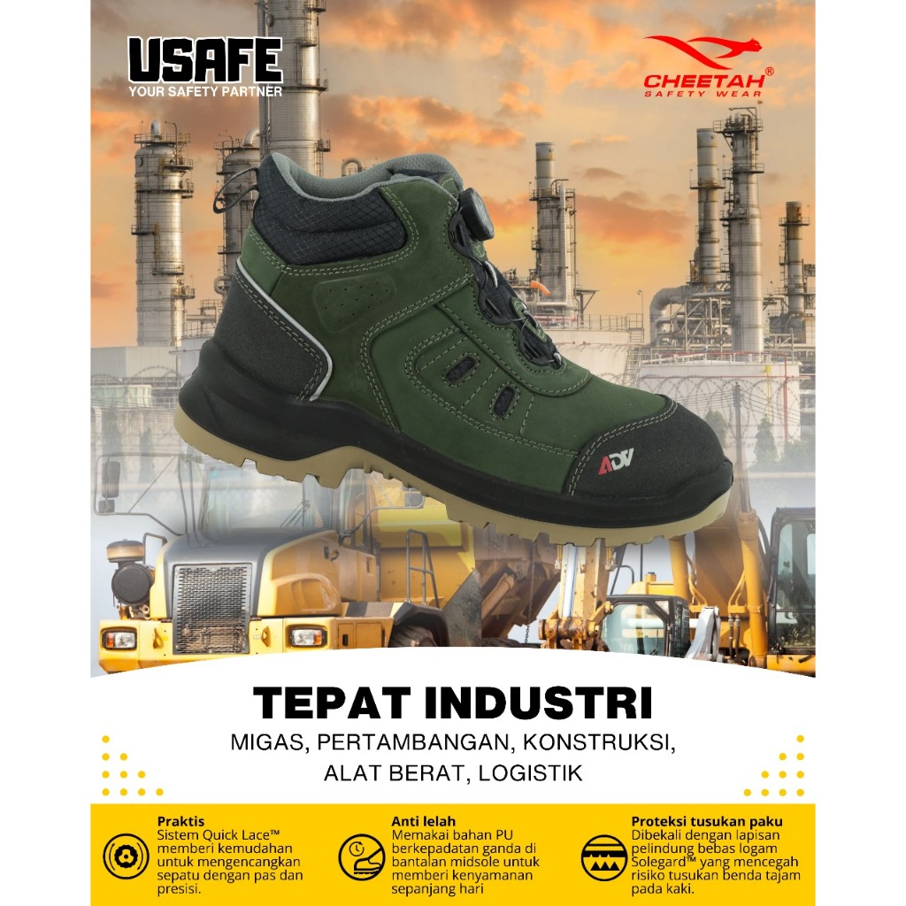 ( GARANSI ) Sepatu Safety Cheetah ADV Jubatus 2.0 Forest Green 6112G Composite