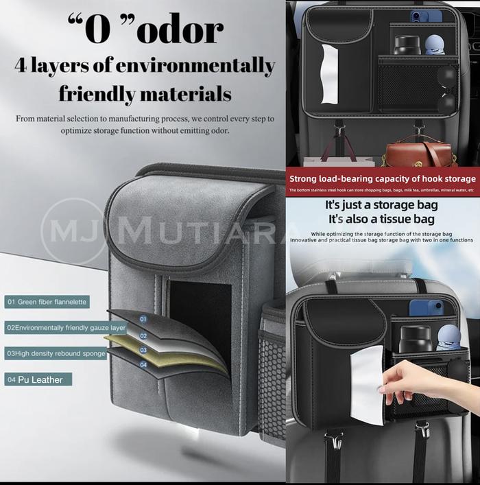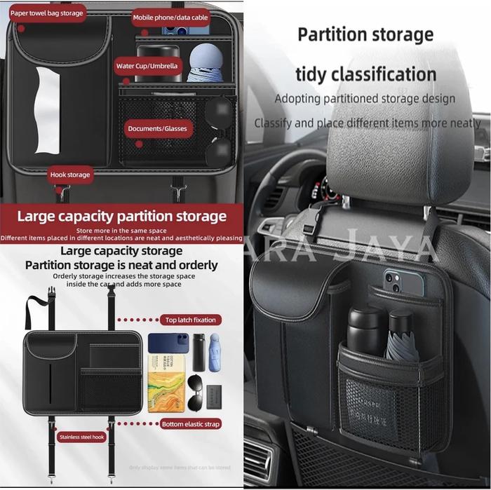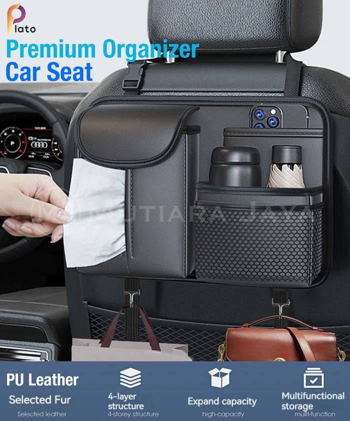 [Star]PLATO Tas Kantong Tisu Kursi Belakang Jok Mobil Kulit Car Seat Organizer - Hitam