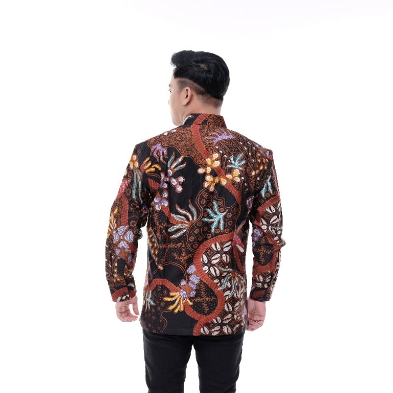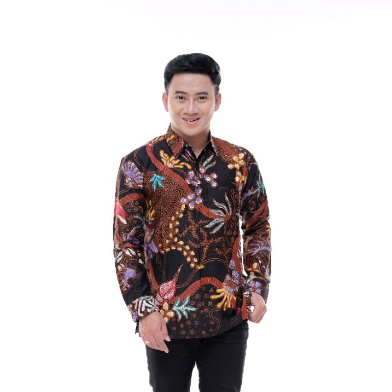 kemeja batik tulis pria katun satin lengan panjang dalam lapis furing Ak193
