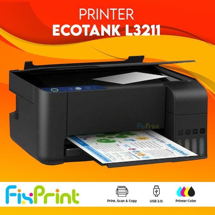 Printer Eco Tank L3210 / L3211 Print Scan Copy AIO EcoTank L3211 L3210 All In One Multifunctions A4 Bergaransi New