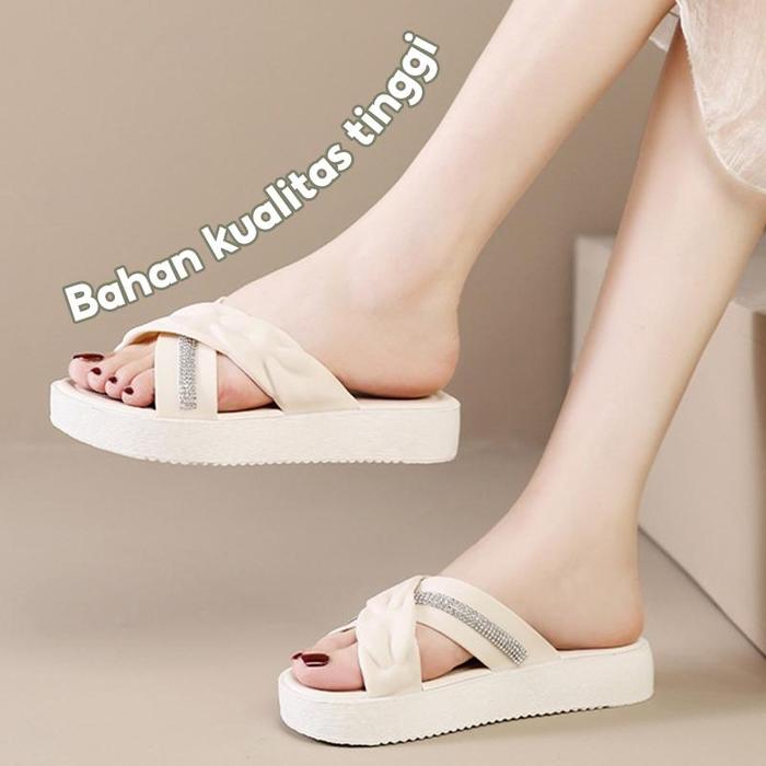 [Star]Sandal Wanita Slip On Jelly Sandal Flat Karet Sendal Selop Fashion Wanita Perempuan - Rice White, 36/37, Standar