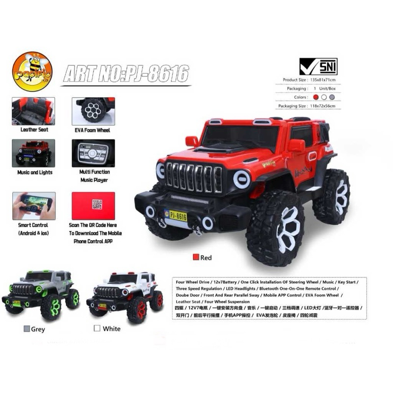 [Mall] Mobil Aki Anak Jumbo Mobil Aki Anak Jeep Besar Pacific PJ 8616 Ban karet Mobilan Anak Bisa Dinaiki Mobil Remote C