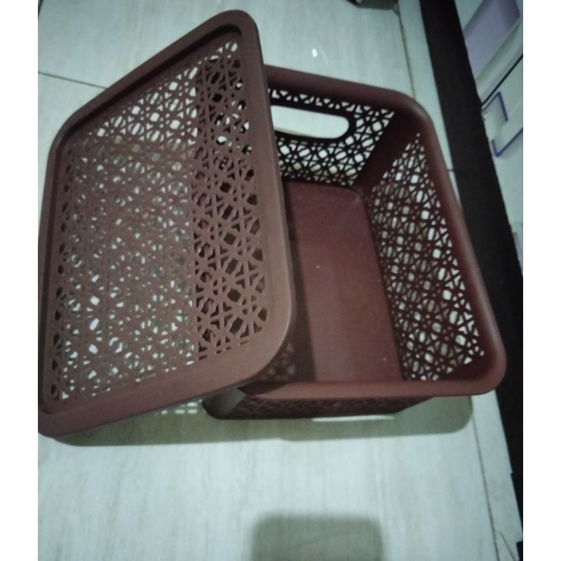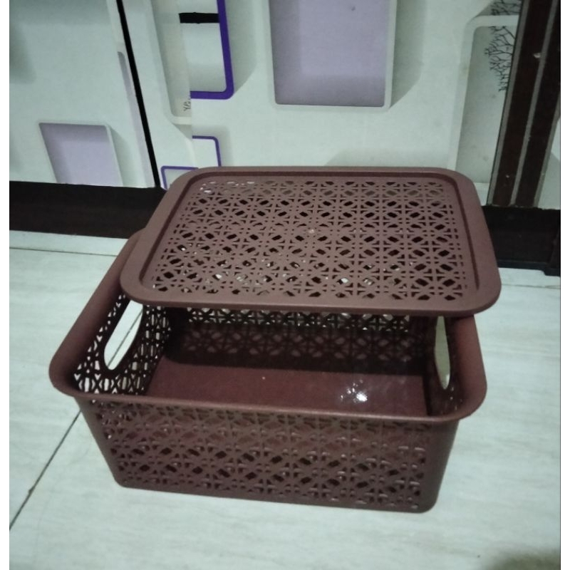 Grosir 12pcs Keranjang Serbaguna Segi + Tutup
