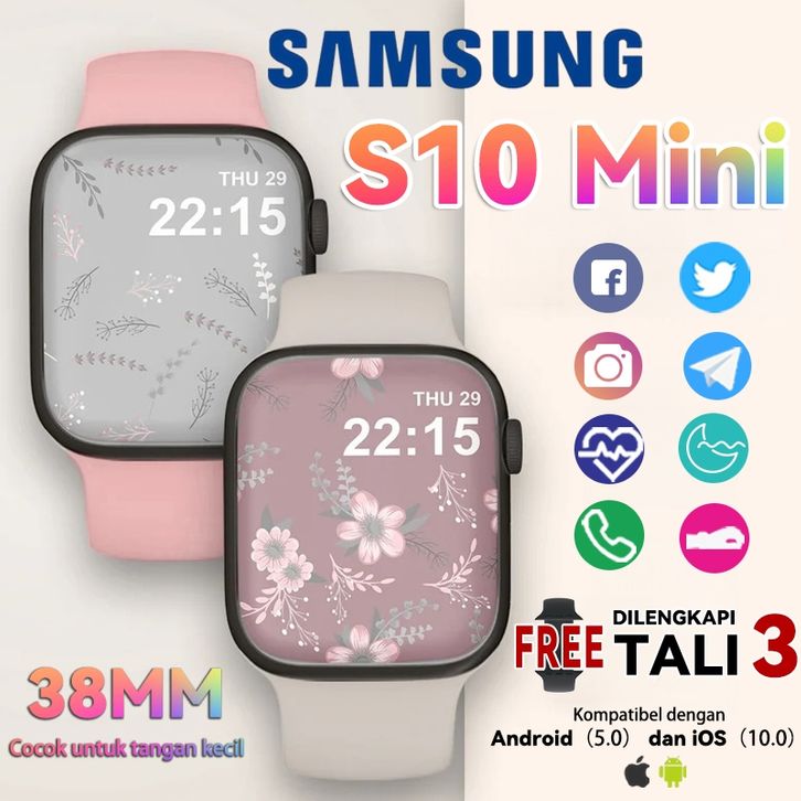 [] Samsung Smartwatch Watch T10Mini 38mm Jam Pintar Olahraga Bluetooth Call Smart Watch Pintar Wanita Tahan Air Jam Tang