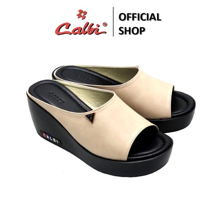CALBI Sandal Wedges Perempuan 7cm Selop Kulit OOTD Simple - KLE 2133 - Kunir 36