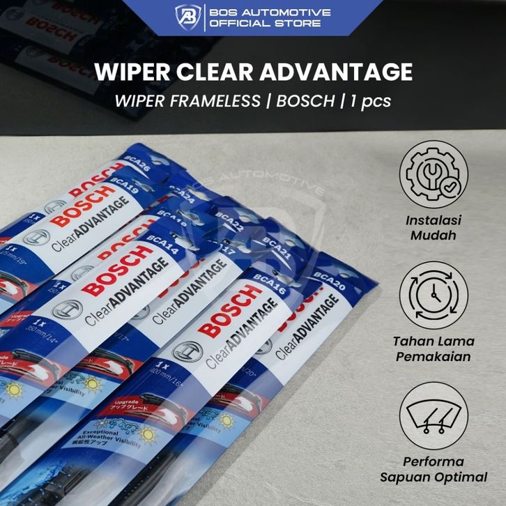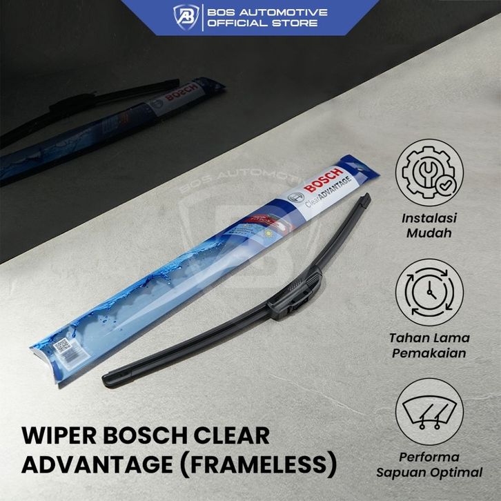 Wiper Blade Bosch Frameless Clear Advantage / Aerofit / Pisang Full Karet / Kipas Kaca Depan Mobil / Frame Hook 14" 15"