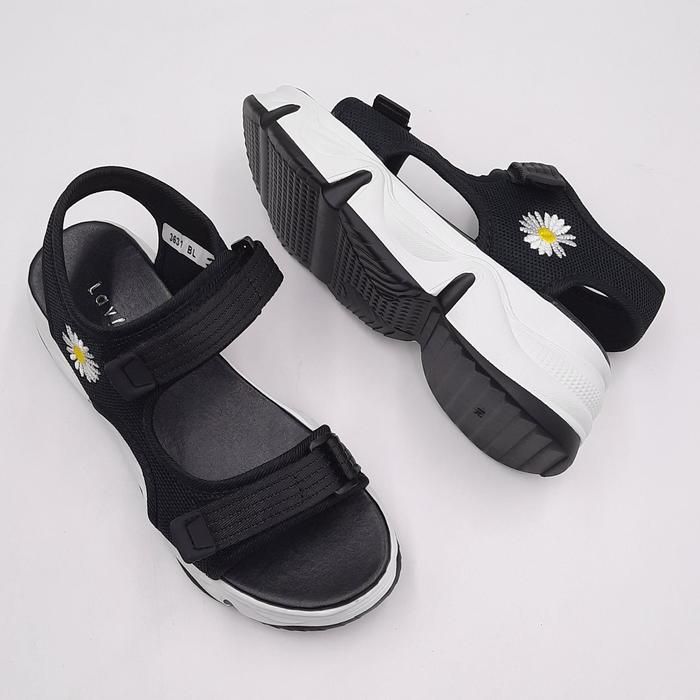 Laviola 3631 WTY - Sandal Wedges Wanita Black dan Beige Sendal - BEIGE 37