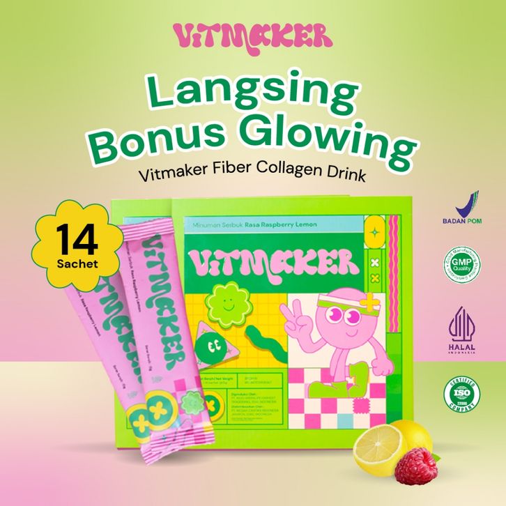 Vitmaker Fiber Collagen Drink Minuman Serbuk Rasa Raspberry Lemon TIDAK FREE SHAKER
