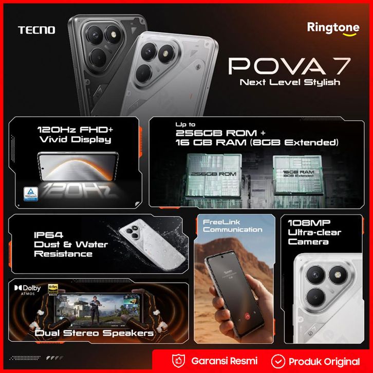 TECNO POVA 7 8/128 + 8/256 GARANSI RESMI 1 TAHUN TECNO