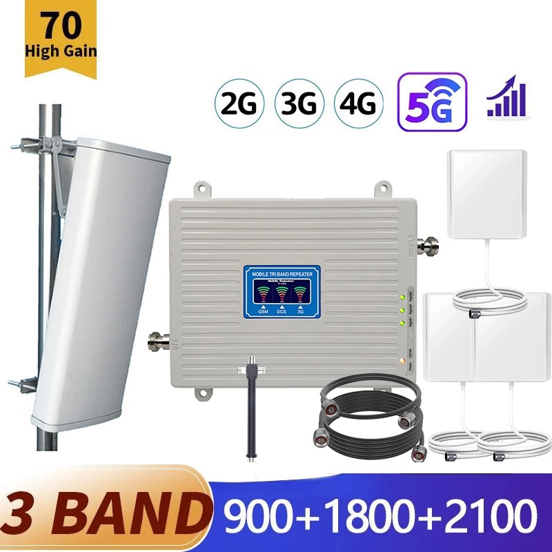 ANTENA PENERIMA JARAK JAUH FULLSET PENGUAT SINYAL REPEATER GSM TRI BAND 2G 3G 4G 900 2100 1800MHZ BOOSTER SIGNAL