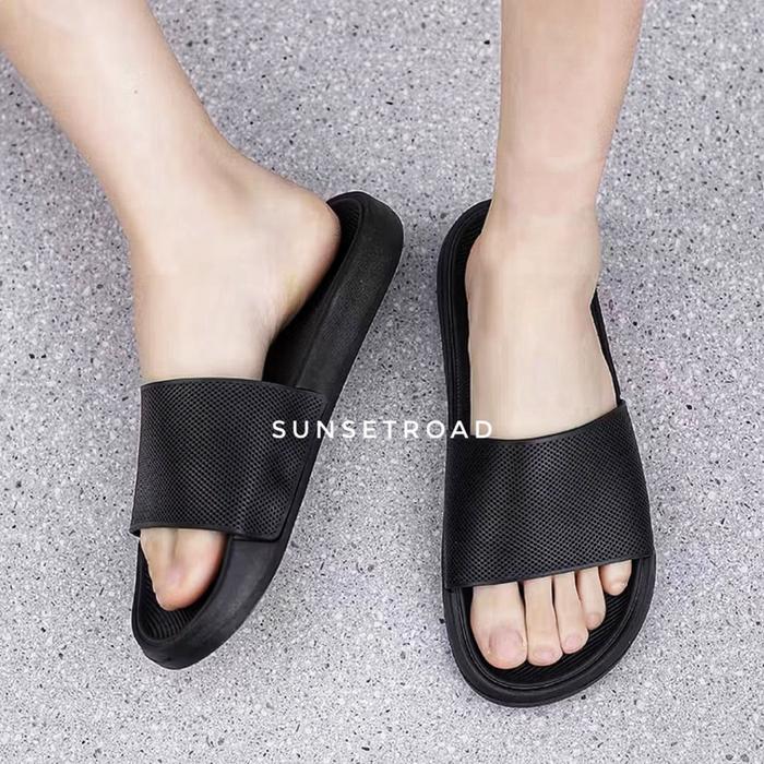 [Star]Sunsetroad sandal slop polos karet hitam putih premium anti selip sandal pria wanita upperlock tanpa lem anti lici