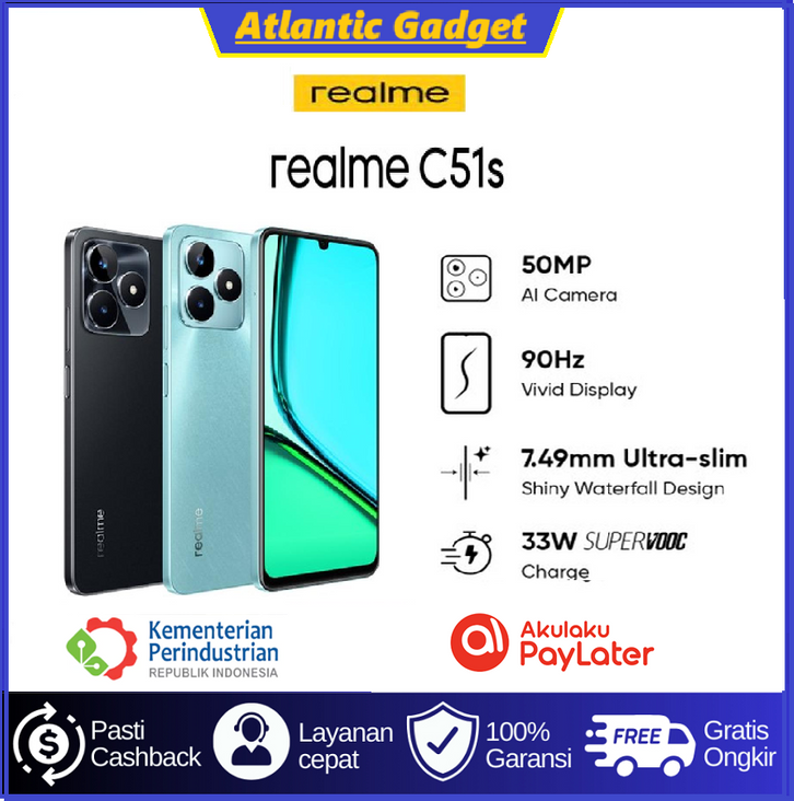 Realme C51S 6/128GB | Unisoc Tiger T612 | Kamera AI 50MP | Baterai 5000mAh | Triple Slot (2 SimCard + 1 MicroSD) | NFC