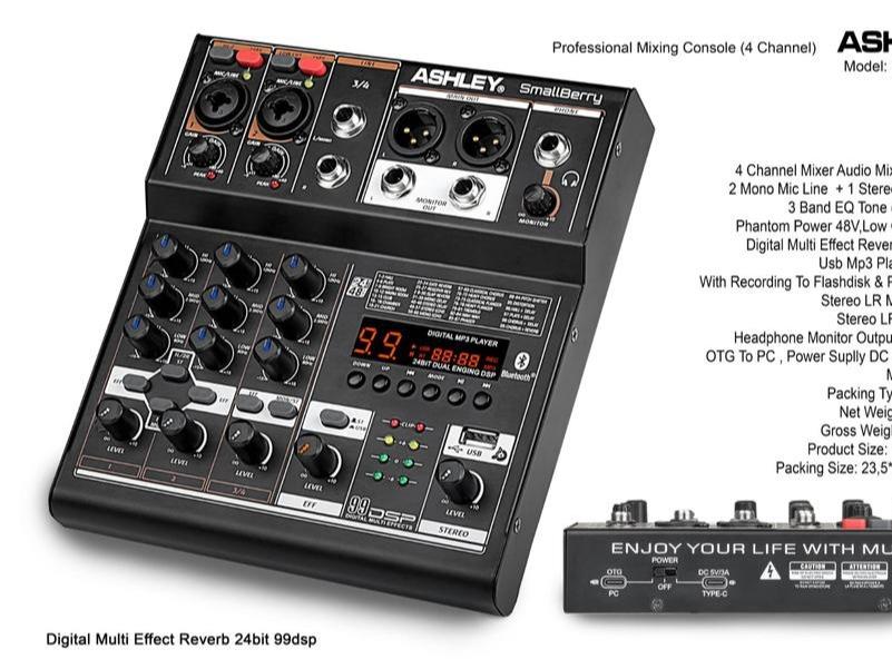 (GRATIS ONGKIR) ASHLEY MIXER AUDIO ASHLEY SMALLBERRY ORIGINAL 4CH EFEK DIGITAL Pc Soundcard Amplifier