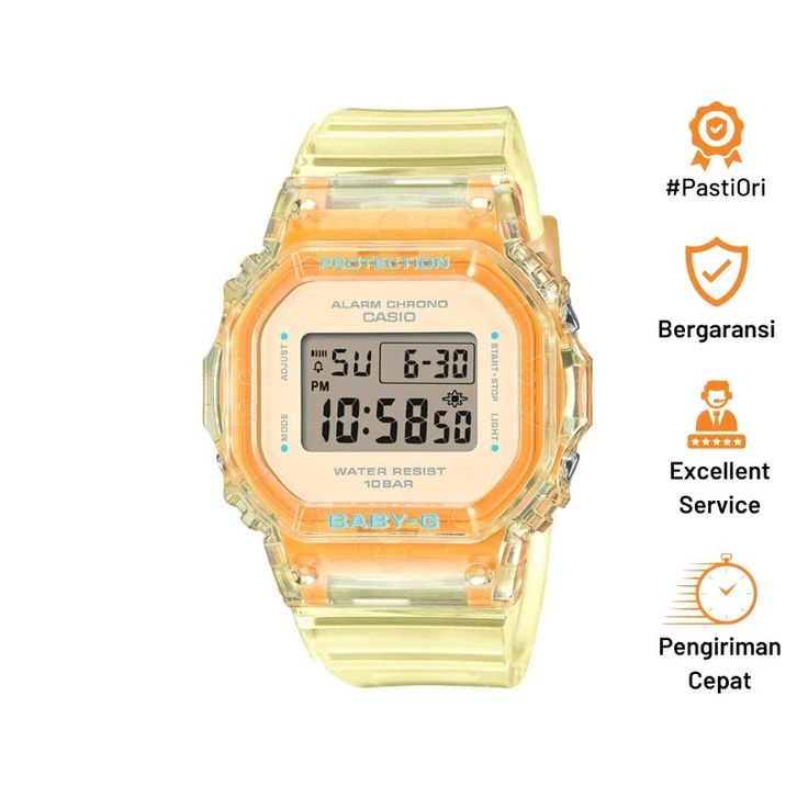 JAM TANGAN WANITA CASIO BABY-G BGD-565SJ-9DR SUMMER JELLY COLOURS DIGITAL TRANSPARENT DIAL TRANSPARENT YELLOW BAND